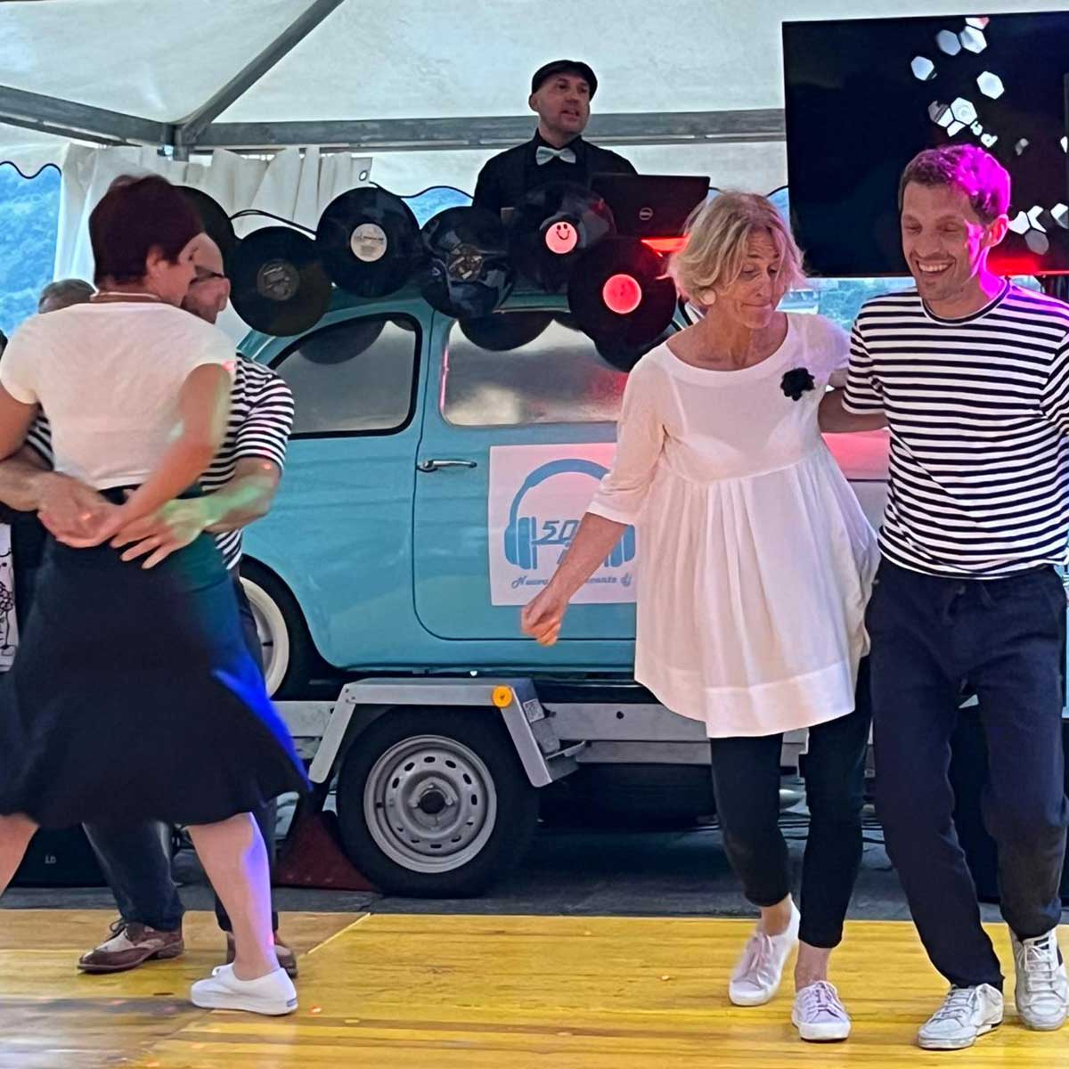 Dalle 20.30 la serata prosegue con Simone Di Gregorio e la sua originale 500DJ, pronta ad accompagnare il pubblico con musica e divertimento. Ballerino pluripremiato e DJ molto conosciuto, porta in scena un progetto davvero particolare: una storica utilitaria degli anni Sessanta trasformata in una consolle musicale.